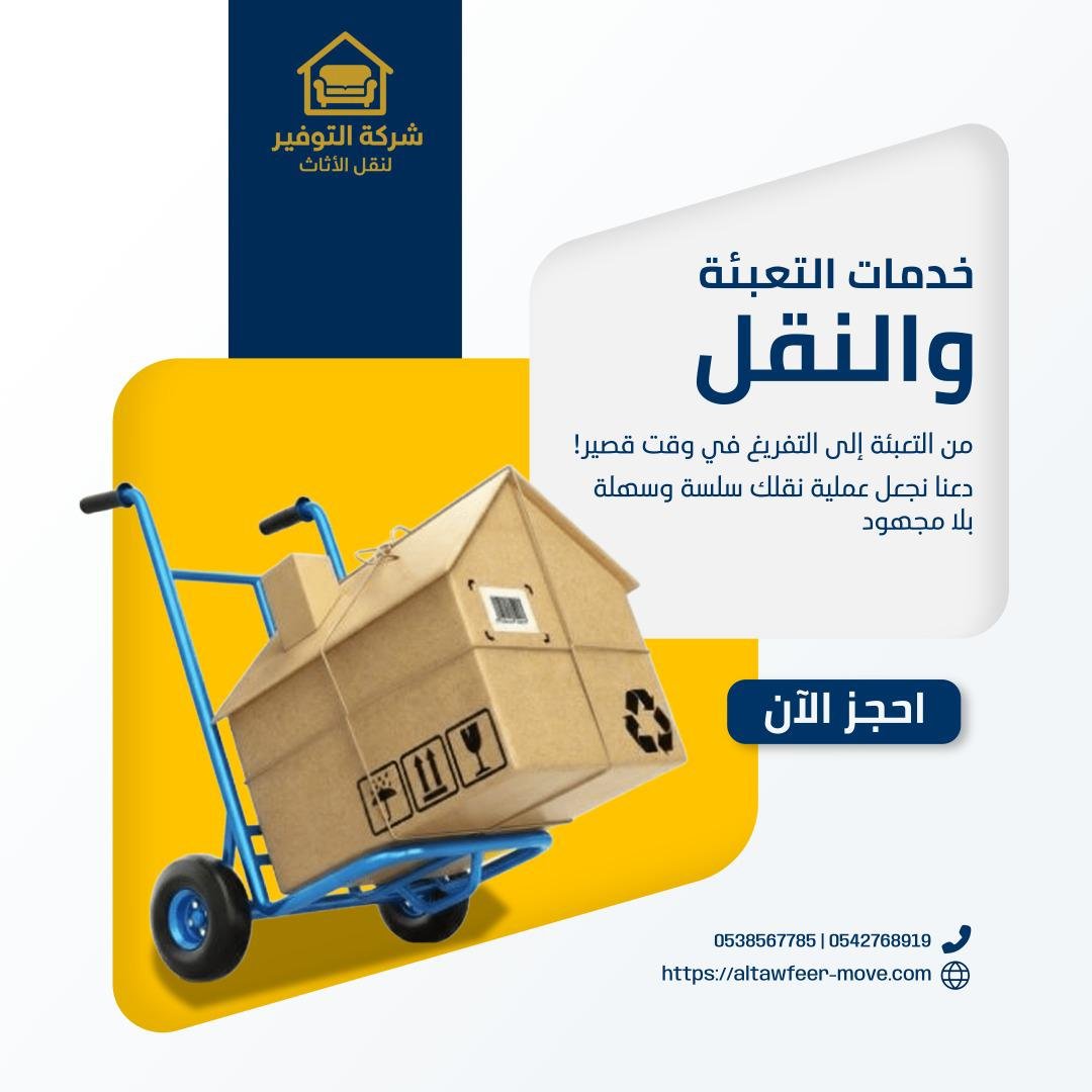 شركة التوفير لنقل الأثاث تقدّم لك خدمة نقل عفش احترافية تهتم بأدق التفاصيل، من التغليف والفك والتركيب إلى النقل الآمن والتسليم في الوقت المحدد. نحن نؤمن أن ثقة العميل تُبنى من خلال الجودة والالتزام، ونسعى دائمًا لتقديم تجربة نقل مريحة وخالية من القلق.